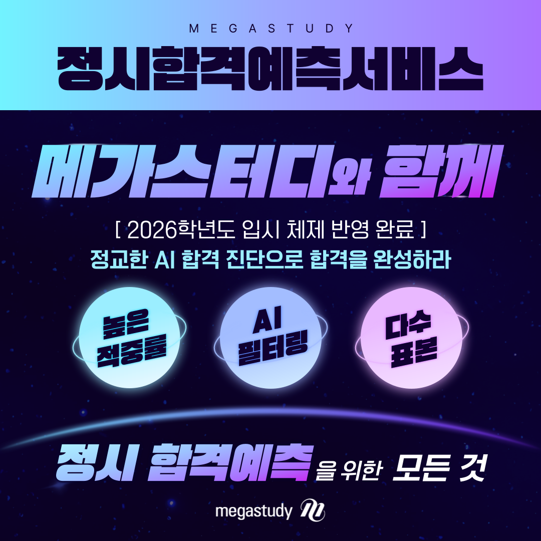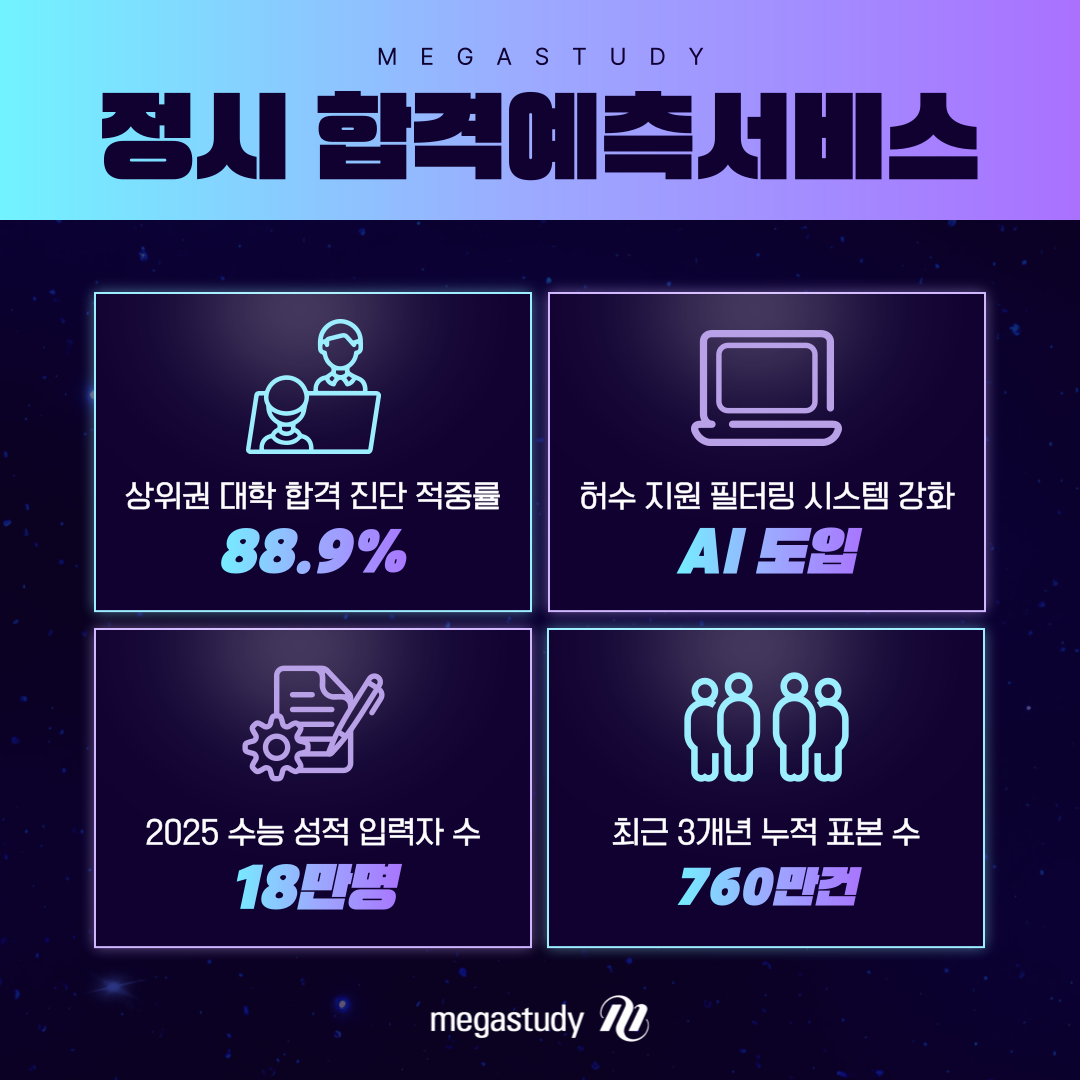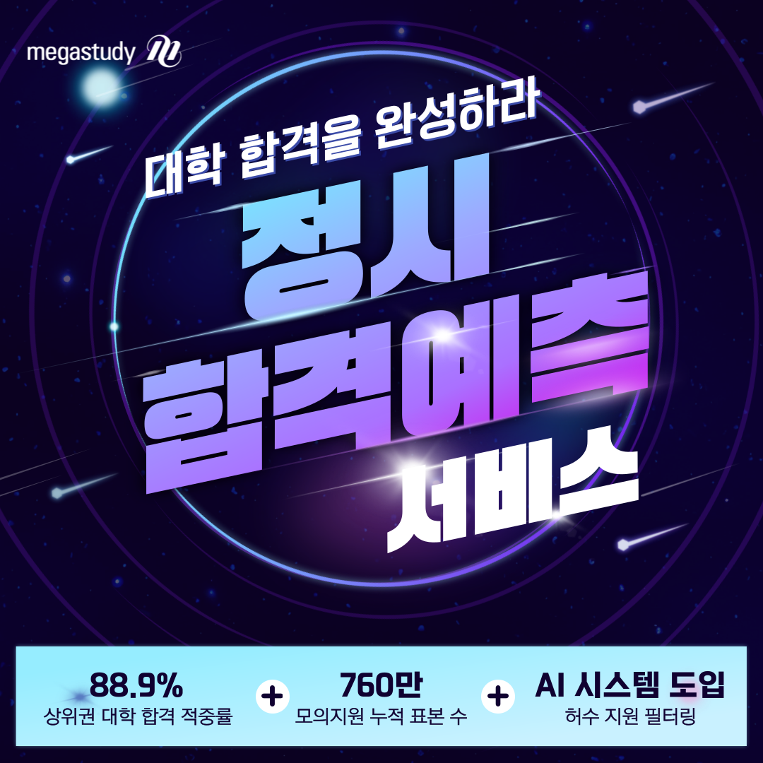 나의 환산점수 산출은 물론, 실제 입시 결과 및 메가스터디만의 빅데이터 분석 시스템을 바탕으로